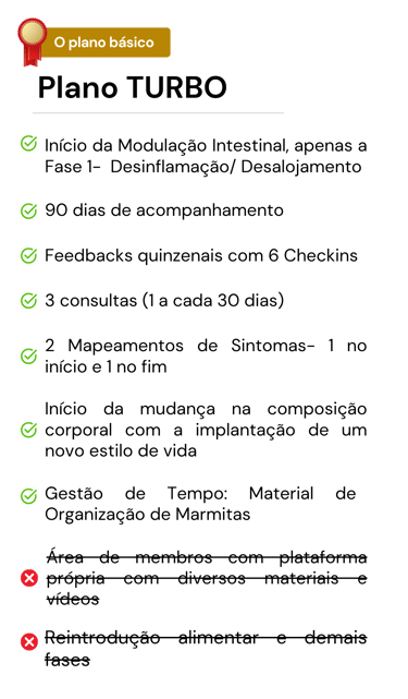 O que acontece aqui: Fase de eliminação dos gatilhos alimentares inflamatórios e irritativos (inclusive para quem tem intestino preso, estufado ou alternância de diarreia e constipação).